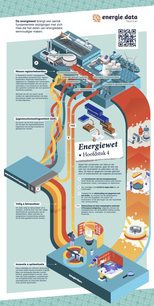 De energiewet brengt een aantal fundamentele wijzigingen met zich mee die het delen van energiedata eenvoudiger maken. De komst van de GUE zorgt ervoor dat de data die registerbeheerders registreren eenvoudig ontsloten en gedeeld kan worden. Bijgaande infographic maakt inzichtelijk hoe deze verandering er uit gaat zien.